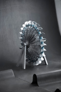 These Harvesting Structures continuously rotate and gravitate - towards the harvest, or each other, or us, the final consumer - alluding to the specifics of a planet, our own, or a new one to be conquered. But beyond their shape, their biggest utopian skill is that they never waste any of their hard-worked content - every dropped piece is immediately gathered by the next rotation. A no-waste aspiration, perhaps?
